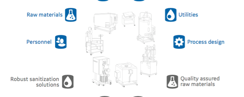 - Buffer preparation – manual, open operation that involves large volumes of fluid, and large tanks that can be difficult to fully sanitize.