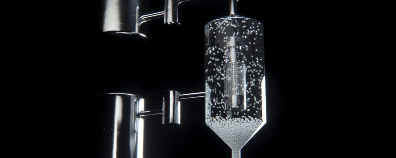 The Purolite jetting process entails using a membrane with very small, discrete orifices, through which the polymer is passed. This device is capable of producing uniform particle size chromatographic resins from ~15 to 250 micron. Cooled, and then hardened, the beads are then collected in a vessel. The process can run continuously and has been scaled up in Purolite’s plant for the past decade.